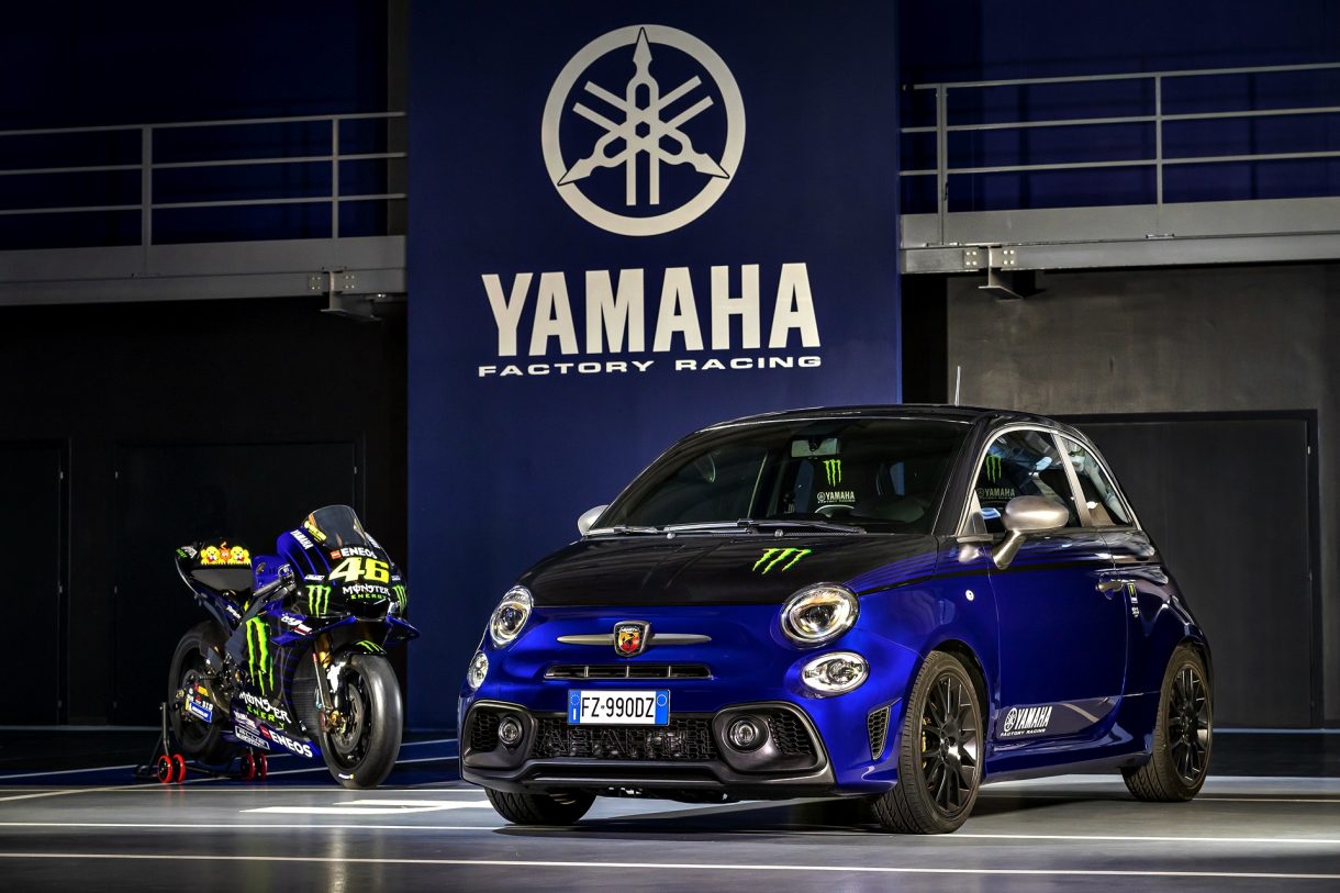De esta colaboración han salido propuestas como la edición también especial Abarth 595 Monster Energy Yamaha un coche deportivo para los aficionados a las carreras de motos. De hecho, no cabe duda que, conocedores o especialistas en el mundo de las motocicletas, la inspiración en la Yamaha YZR-1 utilizada en el campeonato de Moto GP es obvia y que, junto con la incorporación del patrocinador de bebidas energéticas aporta, resulta un coche salido de la pasión de diferentes empresas dirigido a una clientela apasionada de los que tan solo, también otros 2.000 afortunados, podrán adquirir una de estas unidades exclusivas.