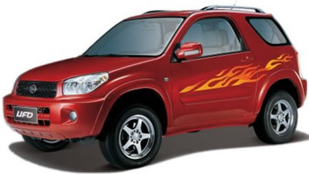 Mientras el UFO cuyo diseño es igual al Toyota RAV4, viene con un motor de 2.0L de 129 CV y otro de 2.4L y 136 CV ambos alimentados con gasolina cuyo precio de venta inicial es 16.000 euros.