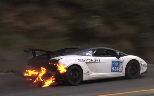 Desde Australia nos llegan unas increíbles imágenes donde un Lamborghini Gallardo, para finalmente ganar la carrera, tuvieron que correr la mitad de la misma con la trasera del coche incendiada.