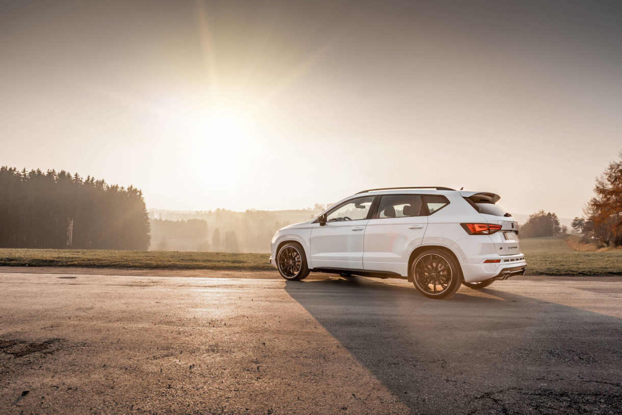 De serie, el SUV español cuenta con un motor de cuatro cilindros y 2.0 litros turboalimentado capaz de generar 300 CV de potencia y 400 Nm de par. Después de pasar por las manos del preparador germano y someterse a sus modificaciones, el Cupra Ateca es capaz de declarar 350 CV y 440 Nm de par, unas cifras que se ven reflejadas en un 0 a 100 km/h en cinco segundos y una velocidad máxima de 255 km/h.