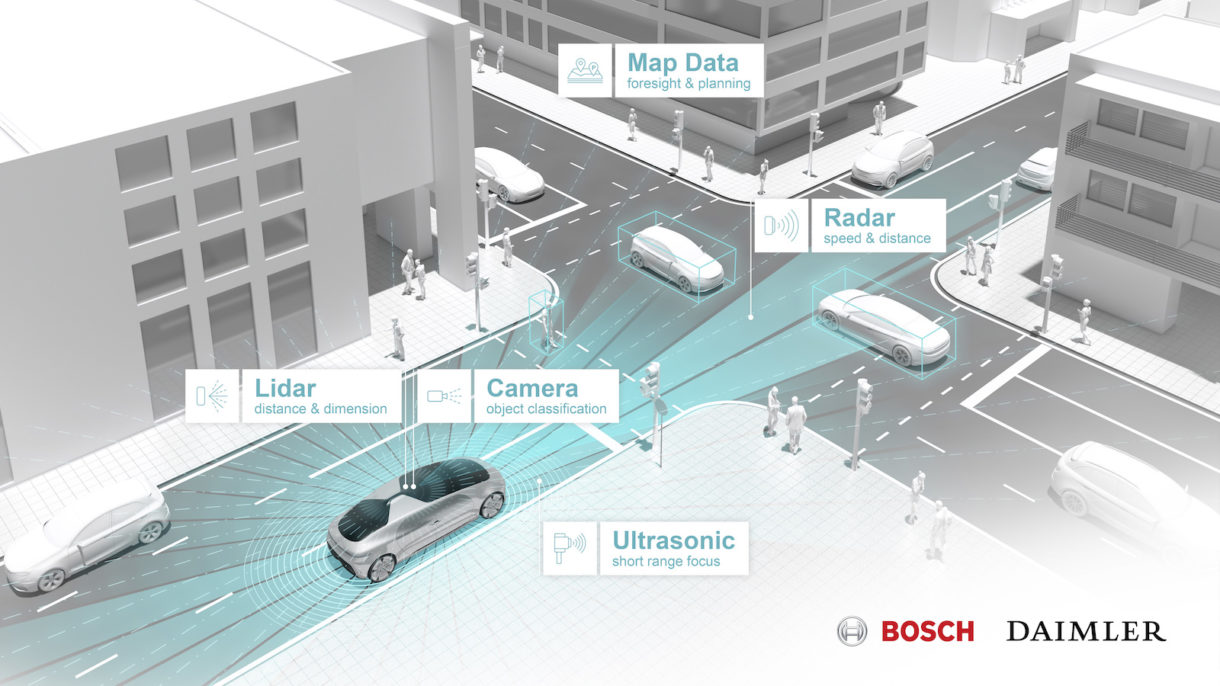 Daimler y Bosch crearán en California (EE.UU.) una flota piloto de vehículos completamente autónomos para llevar a cabo, pruebas que permitan verificar el correcto funcionamiento de los mismos. El objetivo de ambos grupos es ofrecer en el mercado, a mitad de 2019, un servicio de transporte con vehículos completamente autónomos en rutas especialmente seleccionadas dentro de una ciudad en California.