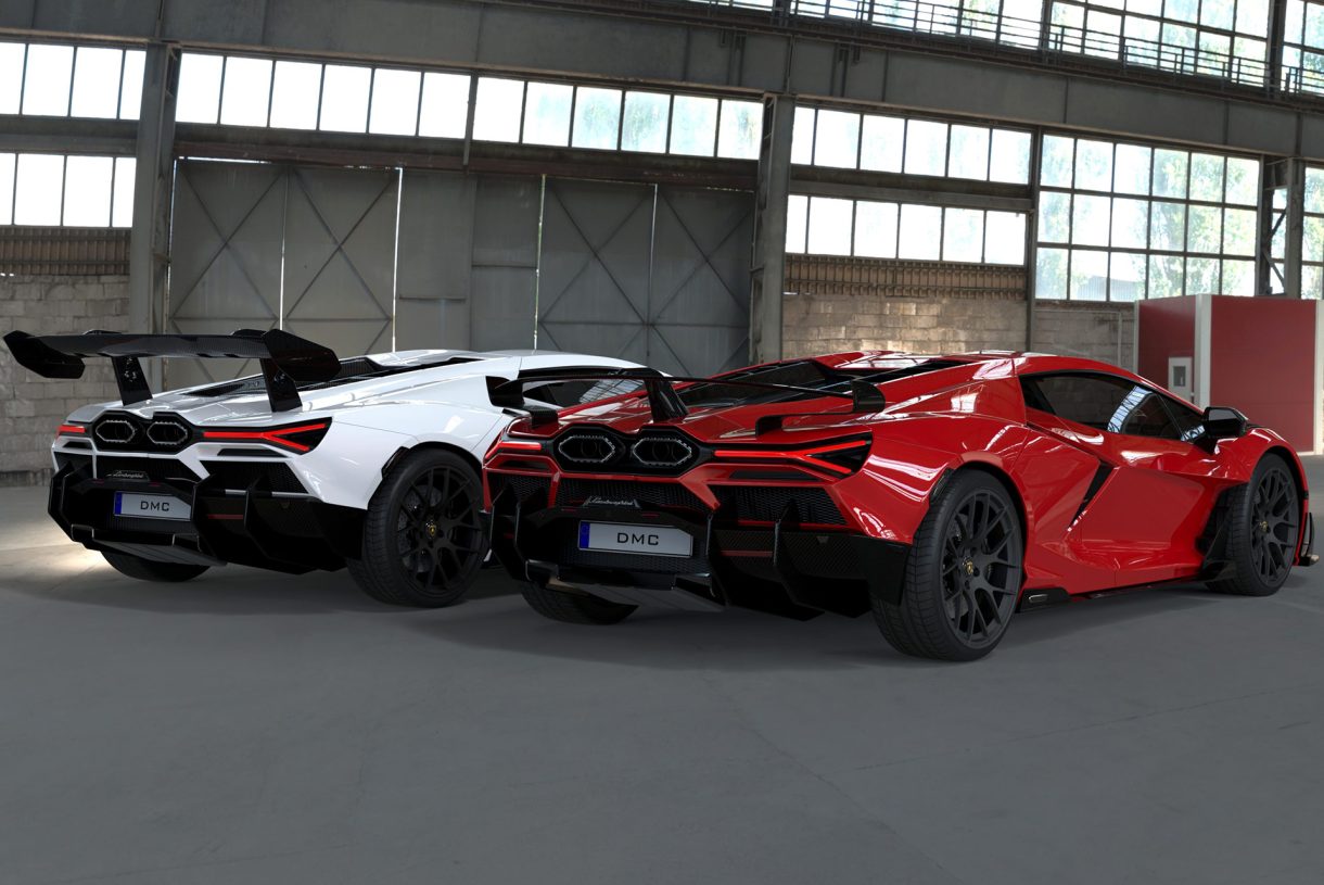 Los nuevos kits, conocidos como «Molto Veloce» y «Schumacher«, exhiben la maestría de DMC en la artesanía y el diseño de fibra de carbono. Ambos cuentan con un paquete aerodinámico completo, inspirado en el linaje SVJ de Lamborghini. Los guardabarros delanteros rediseñados, junto con salidas de aire de fibra de carbono, mejoran la refrigeración y la aerodinámica. Los paneles laterales y las ventilaciones de las puertas con espadas adicionales de fibra de carbono destacan a lo largo del costado. El parachoques trasero se ha transformado con un diseño distintivo que rinde homenaje al ADN de Lamborghini presente en sus aclamados modelos SV. El difusor trasero más grande, inspirado en el Super Trofeo, agrega un toque de agresividad y rendimiento.
