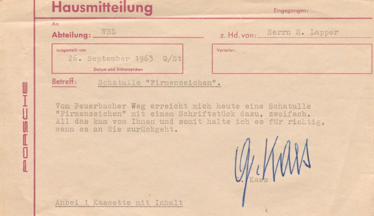 A Hanns Lohrer se le encomendó una tarea muy relevante: crear un nuevo escudo. En principio, se lanzaría con el sucesor del Porsche 356, cuyo proyecto respondía a la denominación interna “Programa T8”. Pero de aquella propuesta no salió nada.