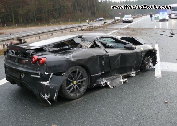 Lo que podéis ver en la foto, es un Ferrari F430 totalmente destrozado. Es evidente que el conductor de esta bestia mecánica no tuvo ni la cautela ni la conciencia necesaria para mantener una velocidad moderada, con un agravante, iba de paseo con su hijo de 17 años y por lo que se puede observar el firme parecía estar húmedo.