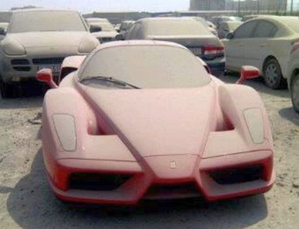 Entre la marea de petrodólares y la eclosión inmobiliaria, no a todo el mundo le va bien en dichos países. Posiblemente el propietario de este Enzo tuvo que abandonar el coche a su suerte, dejando atrás deudas millonarias o alguna posible estafa. Lo cierto es que las altísimas temperaturas promedio en Dubai (unos 40 grados a la sombra) no dejarán demasiado para admirar de esta joya de Ferrari.