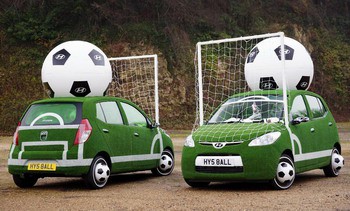 Hyundai tiene que amortizar todo el dinero que ha invertido para ser patrocinador oficial del próximo Mundial de Fútbol de Sudáfrica y ha decidido crear dos engendros únicos (menos mal, esperemos que sean destruidos una vez concluya la cita futbolística) con motivos futboleros.