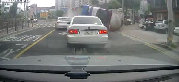En algún lugar de Rusia, según parece, un camión de concreto ha perdido el control y ha chocado de frente contra tres coches que esperaban el cambio del semáforo. Mientras pasa sin siquiera tocar a los coches que circulan en sentido perpendicular, el primer coche de la fila logra moverse un par de metros con la mole acercándose a toda velocidad y logrando amortiguar el golpazo; los otros dos son alcanzados de lleno por el camión descontrolado. El vídeo, lo tienes después del salto.
