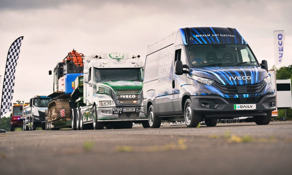 En una prueba de resistencia y arrastre, un Iveco eDaily ha remolcado casi 154 toneladas en forma de tres camiones y una excavadora, entrando así en el Guinness