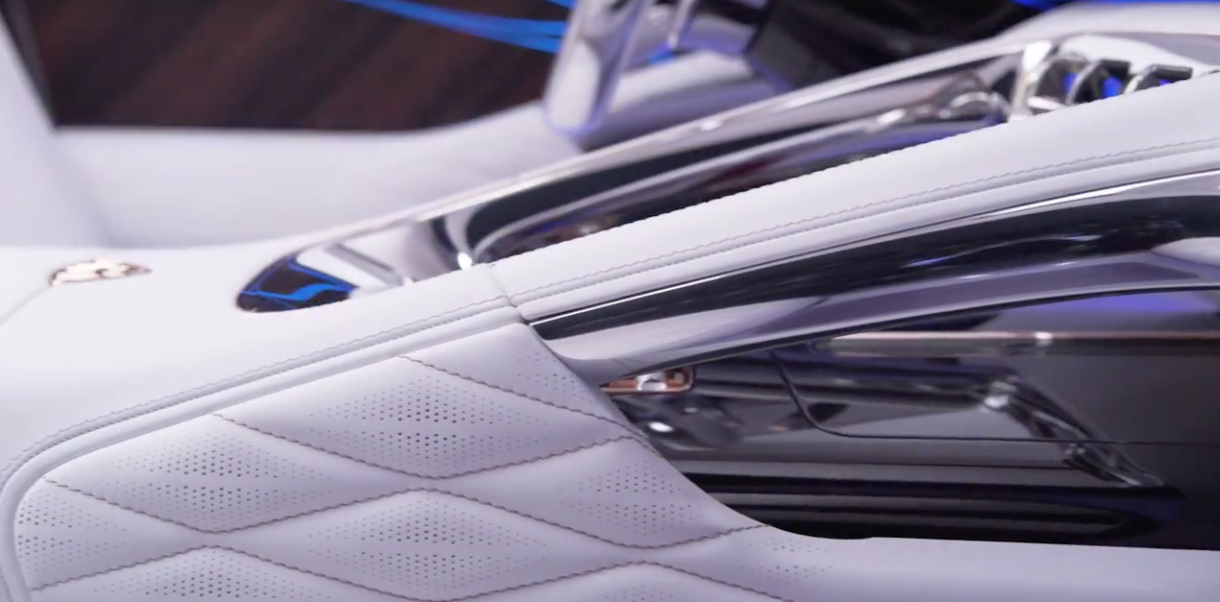 Podemos observar como recurren a materiales de primera calidad por doquier: tanto en la consola centra como en el volante encontramos inserciones de aluminio y cuero. Al mismo tiempo, esta configuración se extiende hacia otros componentes del interior, como los asientos posteriores, los cuales muestran un diseño futurista con algunos detalles que nos recuerdan que estamos sentados en un Mercedes-Maybach.