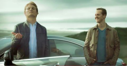 Me ha gustado el anuncio, sobre todo porque no aparece ninguno de los dos en ridículas carreras a bordo de taxis londinenses o carreras a pie, como las que protagonizaban Hamilton-Button o Alonso-Hamilton para los comerciales producidos por Vodafone. Ni el Kaisser ni Rosberg van a ganarse un Oscar por esto, pero una sonrisa nunca viene mal para comenzar el fin de semana.