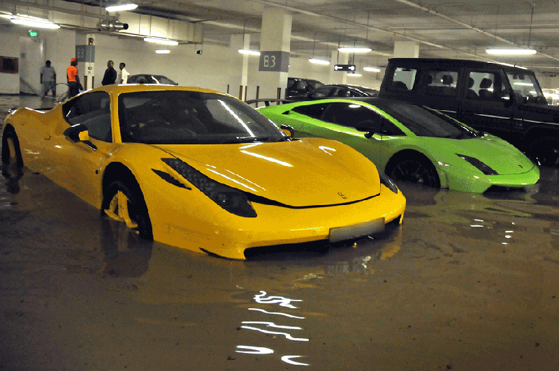 Desafortunadamente no solo está llena de dinero y lujo sino también de agua, sino que se lo digan a los “pobres” que tenían guardado su mimado superdeportivo en el local de St. Regis Residences, superdeportivo que lamentablemente tuvo que darse un baño de barro y no precisamente para revitalizar su piel.