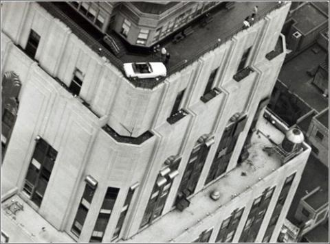 Curiosa foto de un Ford Mustang colocado en lo alto del Empire State Building, uno de los edificios más altos de Estados Unidos y desde luego uno de los más emblemáticos junto con la Estatua de la Libertad. En 1965 Ford se buscó la manera de subir las piezas desmontadas de un Ford Mustang a lo alto de una de las terrazas del edificio y dejarlo allí un tiempo para la vista aérea.