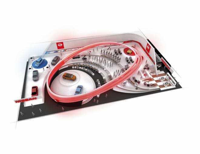 Nissan también usará el evento para dar a conocer su nueva exposición global del Salón del Automóvil. Este cuenta con una muestra de vehículos en diferentes alturas, un escenario al estilo anfiteatro y un sistema interactivo denominado «Wall Innovación», impulsado únicamente por la tecnología de Xbox Kinect.