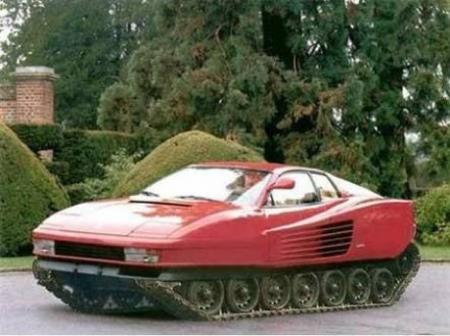 Después de haber visto el Porsche 928 GTS con seis ruedas y pick-up o el Boeing 727 limusina, ¿Creías haberlo visto todo en lo que se refiere a los coches? Mucha gente piensa que si, pero la respuesta es un NO rotundo, ¿Por qué?, ¿Acaso no has visto la foto de arriba? ¡Sí!, ¡Es un Ferrari tanque!