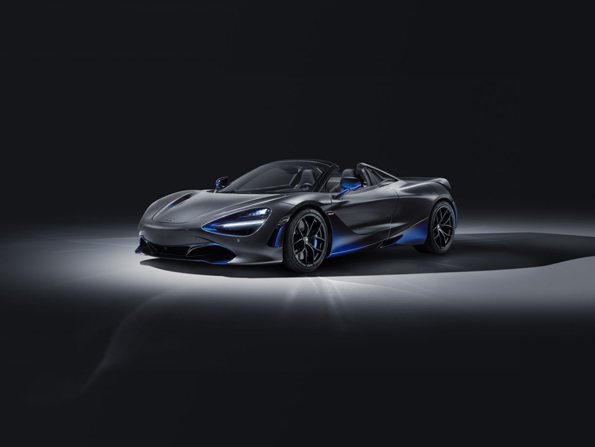 El nuevo convertible de la súper serie, Mclaren 720S Spyder combina tres pinturas metálicas, azul cerúleo, azul burton y negro abismo. Un acabado denominado Coriolis que demuestra la intervención de MSO.
