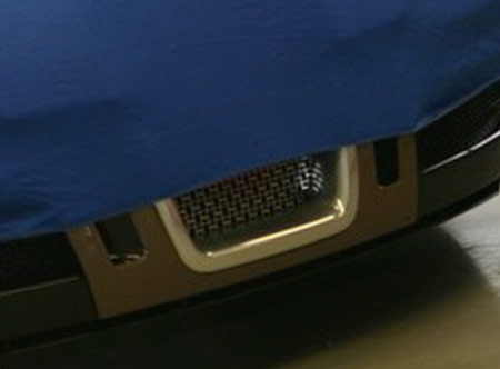 La foto que acompañaba al anterior post apenas dejaba apreciar los cambios en la parrilla. En esta imagen tomada más de cerca se puede apreciar el final de la calandra, y cómo se ha utilizado un metal especial y aparentemente muy exclusivo. Lo que se esconde debajo de la funda ya sí que es un misterio.