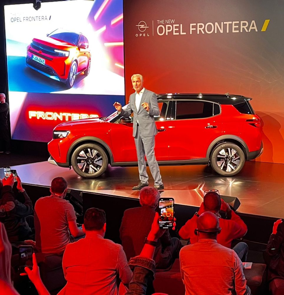 Fruto del acuerdo con Leap Motors y compartiendo plataforma con el nuevo Citroën C3 se ha desarrollado esta nueva edición del Opel Frontera, que intenta conservar algunas características de la marca, como la integración del logotipo Opel Blitz en el centro del Vizor y en la parte trasera, la interpretación de la firma del rayo con tres bloques de iluminación, con faros led y pilotos posteriores separados, amplios pasos de rueda o capó muy horizontal y elevado para transmitir una imagen de robustez.
