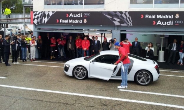 Los jugadores del Real Madrid han estado en el circuito del Jarama para recoger sus Audi. Cristiano Ronaldo ha optado por el R8, mientras que gran parte de la plantilla se ha quedado con el Q7.