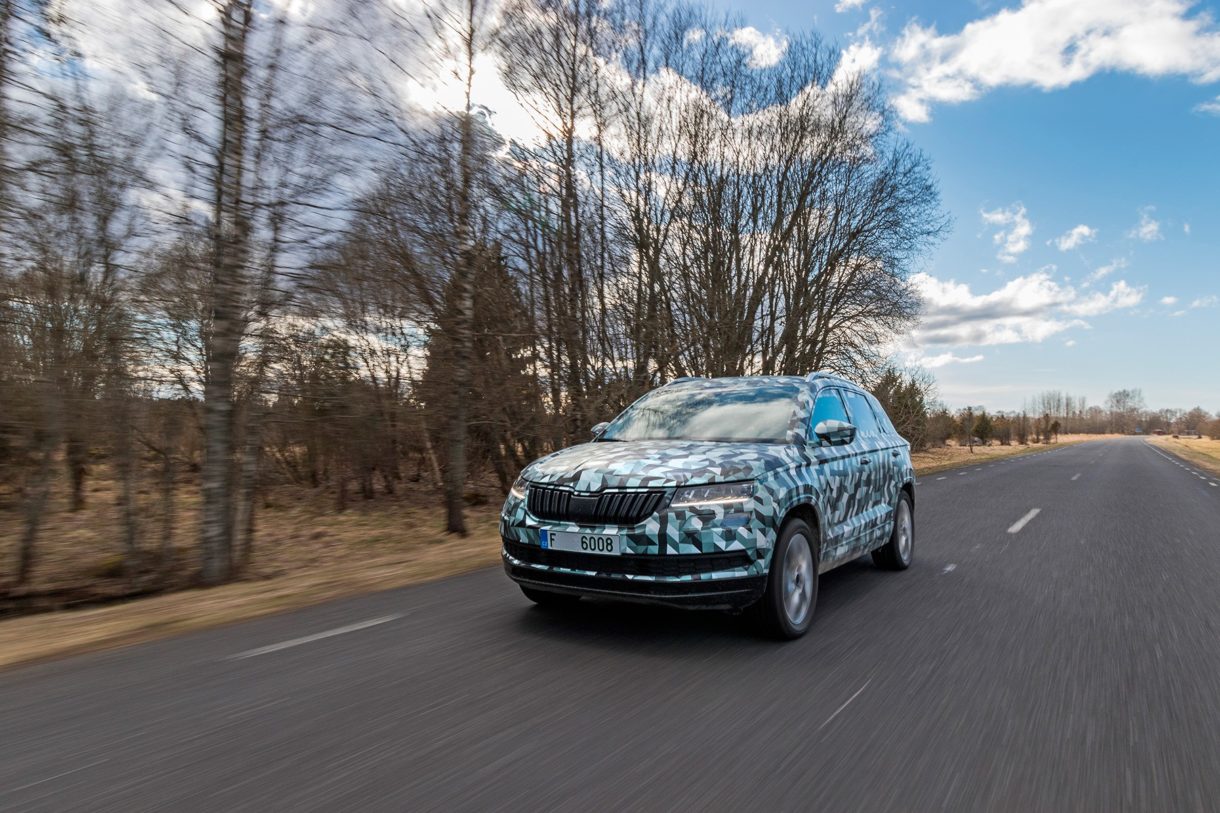La presentación del ŠKODA Karoq se producirá en Estocolmo, y para llegar hasta allí, este modelo camuflado pero ya listo para producción, viajará por carretera