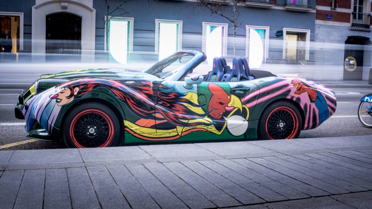 Este coche, preparado por el artista chileno Víctor Castillo, estará en subasta entre los días 7 al 10 de marzo para el proyecto artístico Lucha de Gigantes.