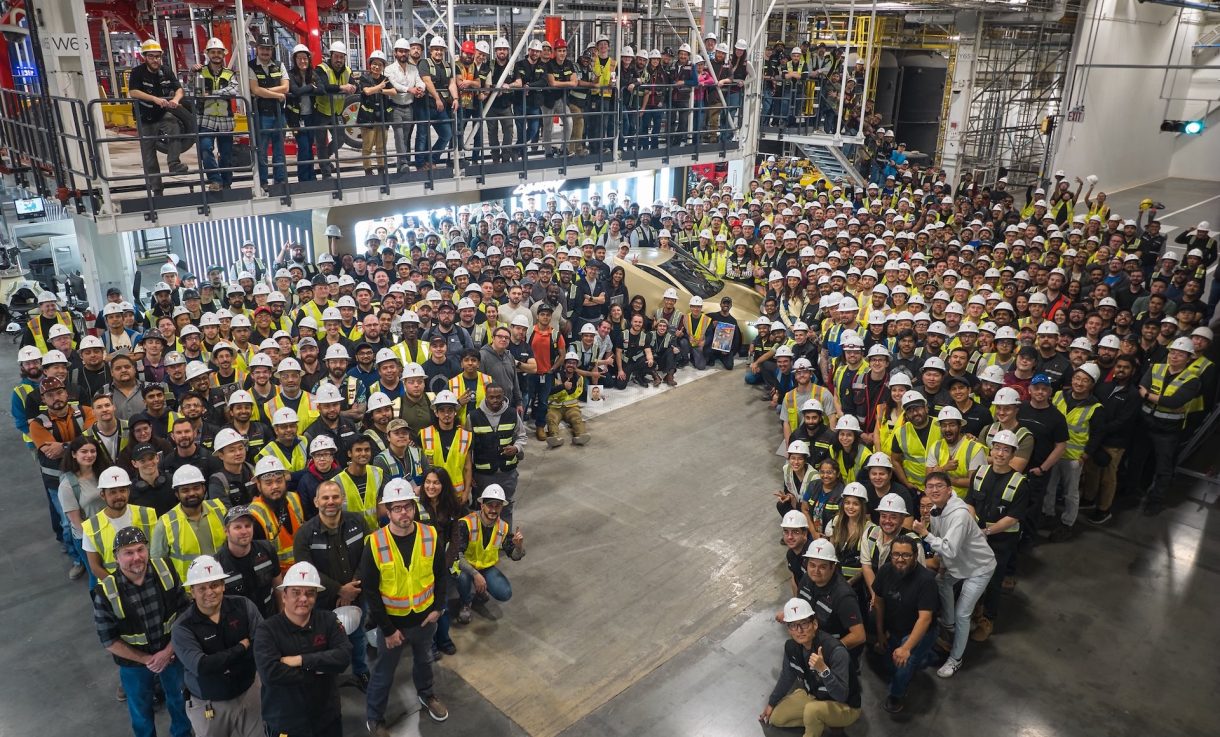 Parecía que este día nunca iba a llegar, pero ya es un hecho. Tesla acaba de anunciar mediante una publicación en la red social X que la primera unidad del Cybercab, su vehículo totalmente autónomo sin volante ni pedales, ya ha salido de la línea de producción de la Gigafábrica de Texas. Esta noticia se ha dado a conocer acompañada de la imagen que puedes ver al comienzo de esta entrada, justo aquí encima, en la que se puede ver al equipo de Tesla que ha hecho posible esta hazaña.
